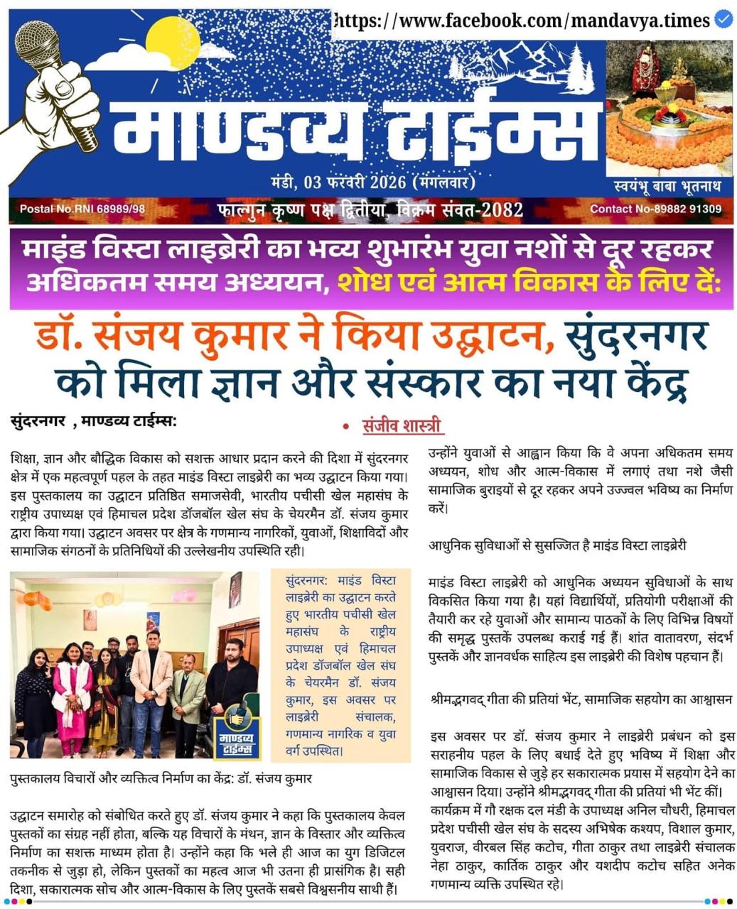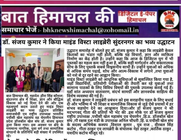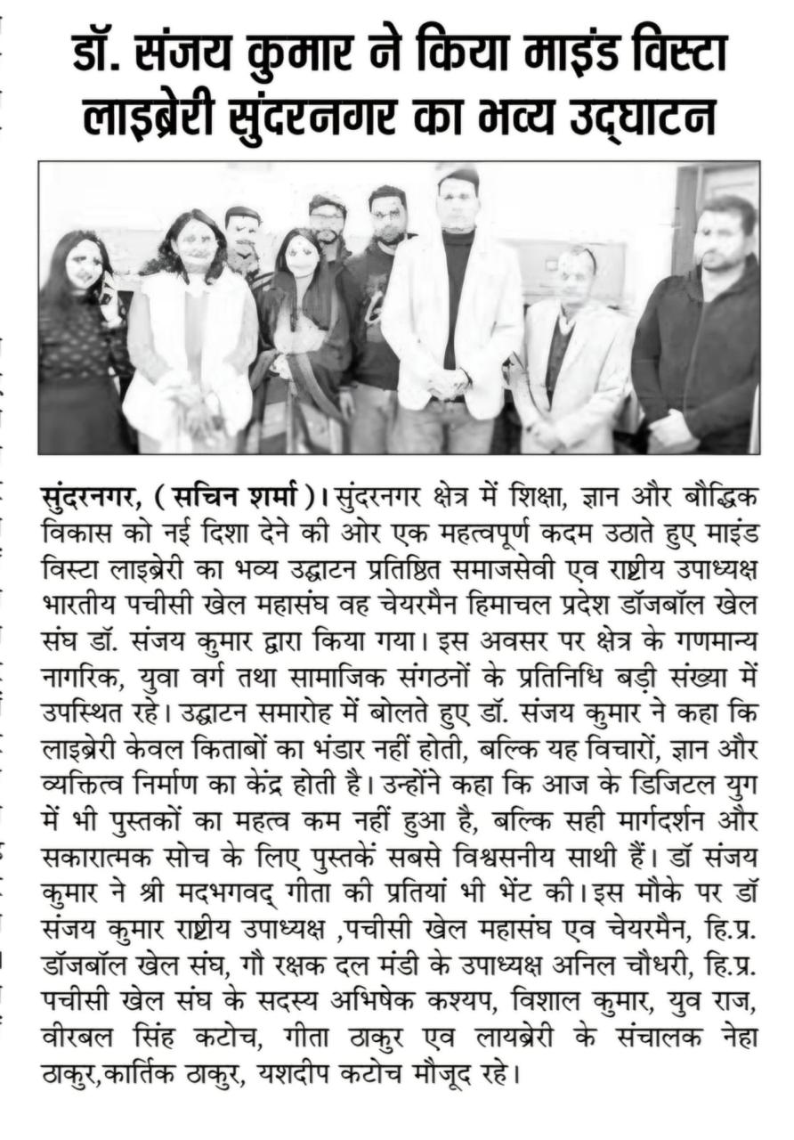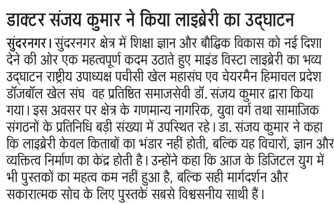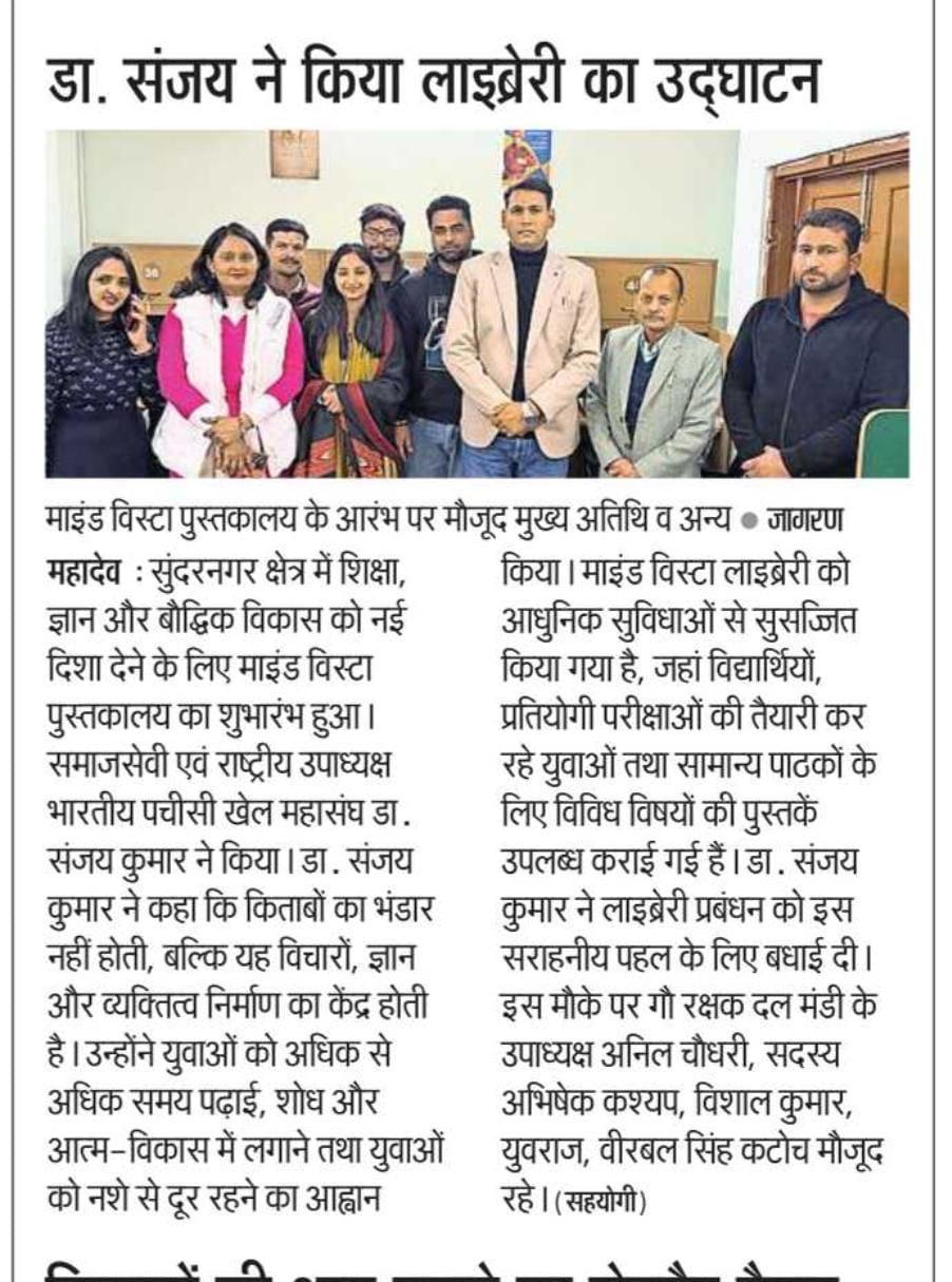 It was a great pleasure and honor for me to attend the opening ceremony of Mind Vista Library Sunder Nagar as the Chief Guest. I truly appreciate the initiative taken to establish a space dedicated to learning, reading, and intellectual growth.