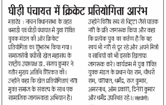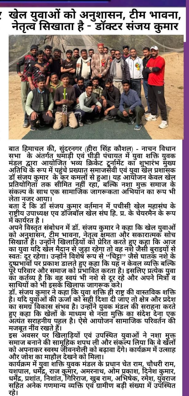I am proud of the initiative taken by Yuva Shakti Yuvak Mandal, Thamadi-Rohanda to fight against chitta and protect our youth from its dangers. Drugs steal not only health but also dreams, ambitions, and the future of our community.